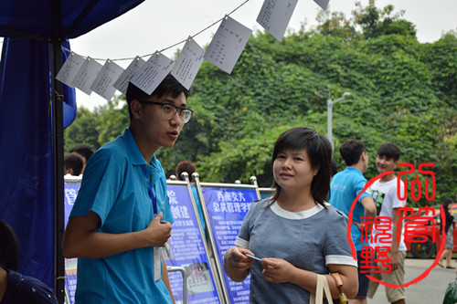 太阳集团官网2014级学生辅导员张哲老师为确保迎新工作顺利进行,张哲老师提前做了大量准备工作,工作计划井井有条。迎新期间,张哲老师耐心地给新生家长讲解,亲切地同新生交流,并指导同学们开展迎新工作,让我们的工作开展得更加顺利。