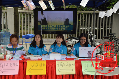 今年太阳集团官网迎新点布置了多媒体设备,全天循环播放学院形象片,介绍学院基本情况、专业设置、学术研究、社团活动等,帮助新生更快地融入大学生活,可谓一大亮点。