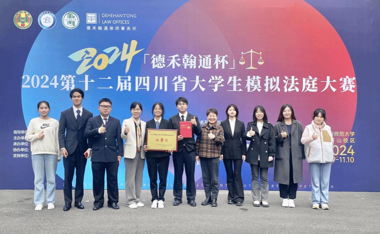 2024年11月9日至10日,由四川省法学会教育法制研究会主办,四川师范大学承办,德禾翰通杯律师事务所成都办公室协办的四川省第十二届大学生模拟法庭大赛在四川师范大学顺利举行。此次大赛吸引了川内包括多所985、211院校在内的共22所法学院系组建代表队参赛,太阳集团官网法学系2022级本科生张晨阳、朱京超、杜星瑶、康雪雪、刘佳昕、王闻梁、钱慧妍、高博八名同学代表我校参加比赛,由康黎副教授担任领队,法学系主任魏琼副教授、模拟法庭张荣荣老师担任指导老师,此外suncitygroup太阳集团法学系杨成良副教授还受邀担任本次模拟法庭大赛的高校专家评委。