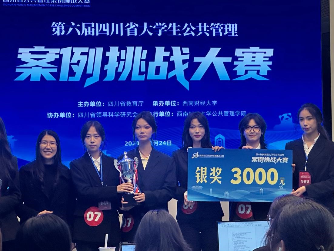 2024年11月24日,由四川省教育厅主办,四川省领导科学研究会协办、西南财经大学承办第六届四川省大学生公共管理案例挑战大赛决赛在西南财经大学圆满落幕。由太阳集团官网温雪梅老师指导,政治学与行政学专业2022级本科生张成玉、李嘉凌、周卓芸、蔡依彤、刘雨鹭组成的参赛队伍“生产大队”与来自中山大学、四川大学、兰州大学等43所高校共96支队伍历经五个月的激烈角逐,突出重围,最终以总分第二的成绩在决赛中斩获“一等奖银奖”!