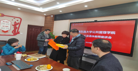 其他同志逐一发言后,高凡在总结讲话中强调,学院将认真思考各位老师提出的意见和建议,真正将其转化为推动学院发展的实际行动。在新年即将到来之际,祝各位老师新年快乐,越来越好!最后,高凡代表学院向退休教师赠送礼物。