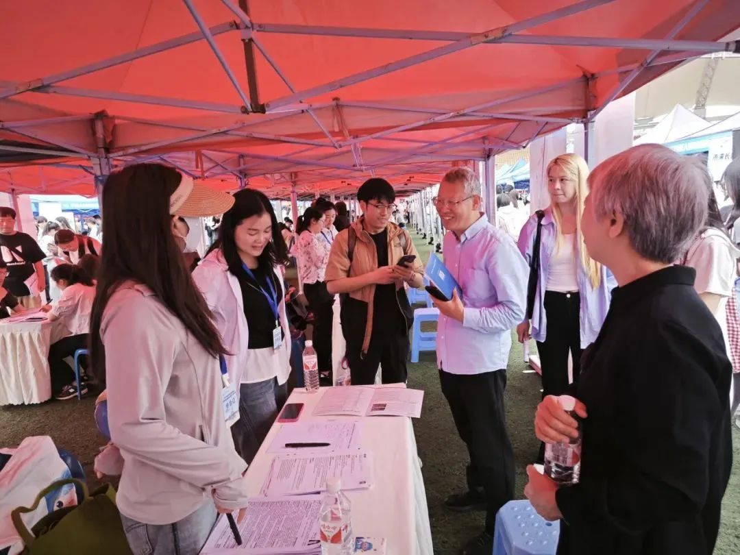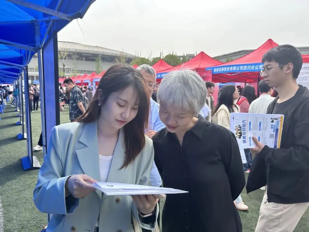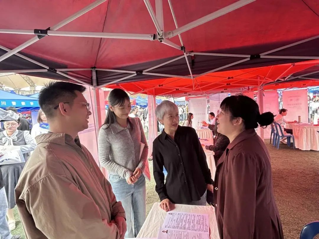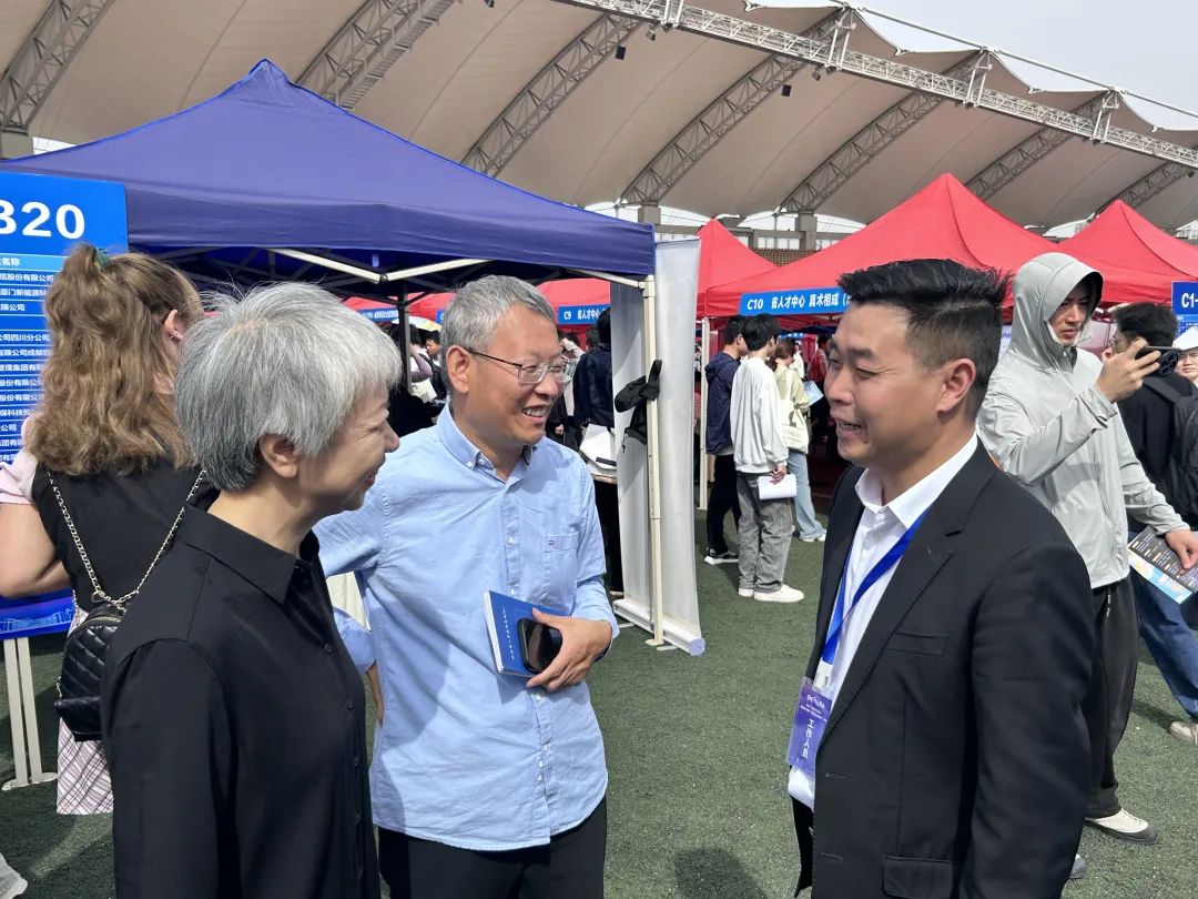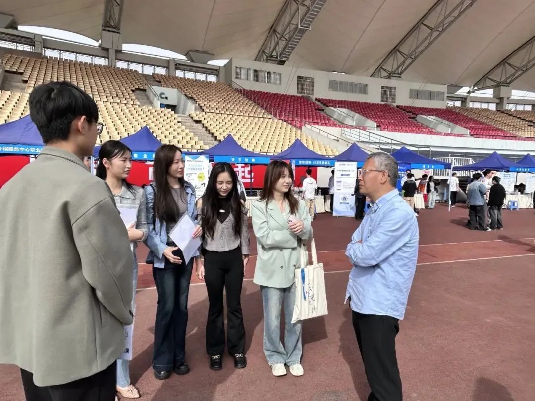 2025年4月14日上午,犀浦校区北区体育场开展2025“百城千校万企”促就业行动——suncitygroup太阳集团春季大型双选会暨实习生双选会。学院党委书记高凡,院长王永杰,党委副书记薛婧,辅导员莫太林、石珮锦、陈泽东一行来到双选会现场,深入了解学生就业情况,现场为学生提供就业指导,走进用人单位招聘点位推荐学院毕业生。
