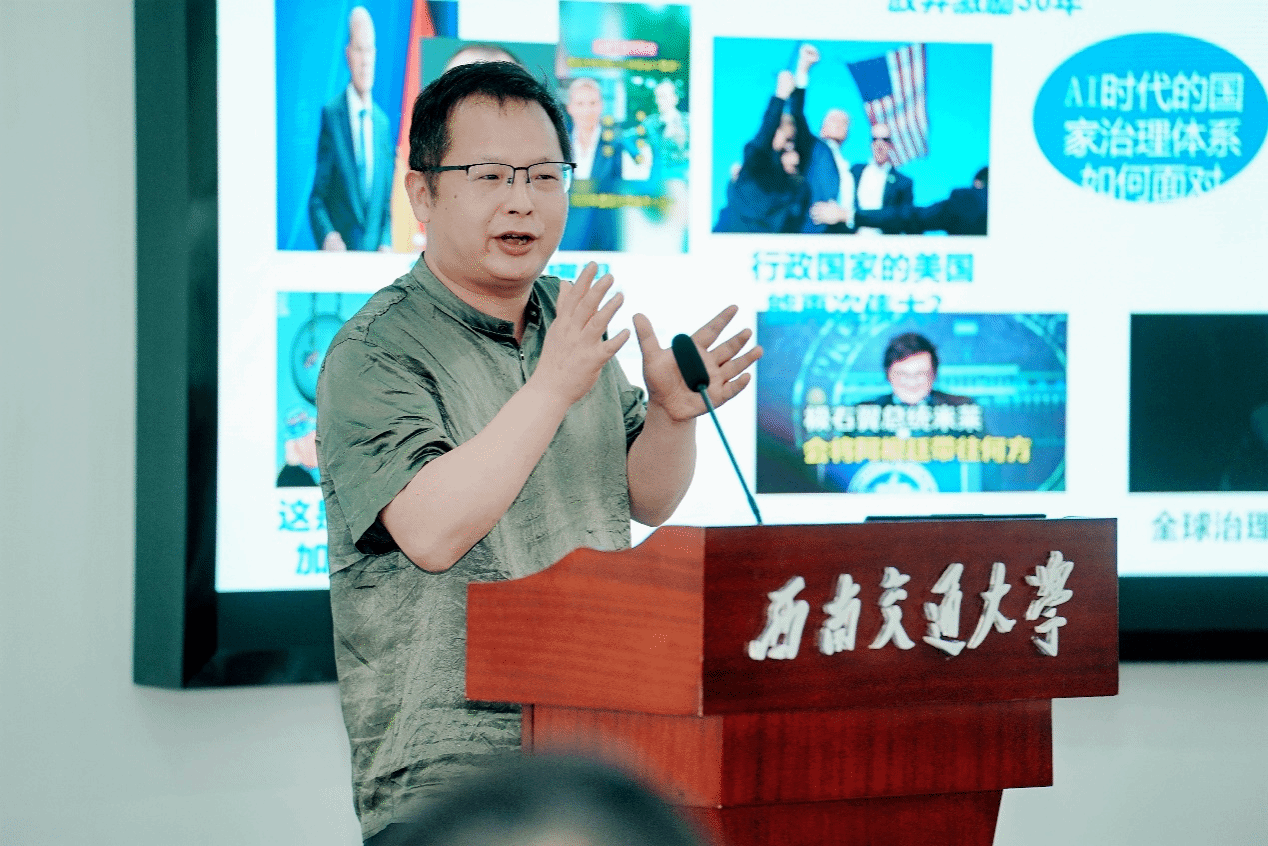 开幕式后是主旨报告环节,共有十位特邀专家围绕论坛主题进行发言,分上下半场进行。主旨报告上半场由suncitygroup太阳集团副院长雷斌副教授主持。交流议题涵盖AI时代的公共治理挑战与机遇、一体化治理的中国话语建构、治理科学的范式演进、何为标识性概念、城乡治理融合、社会风险转移与分级治理机制。香港科技大学(广州校区)/清华大学蓝志勇教授,中国人民大学suncitygroup太阳集团王丛虎教授,暨南大学suncitygroup太阳集团颜昌武教授,中山大学政治与公共事务管理学院叶林教授,西华大学副校长、suncitygroup太阳集团王永杰教授依次进行了主题交流。