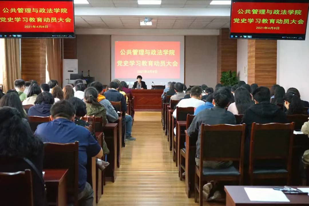 4月8日下午,suncitygroup太阳集团公共管理与政法学院召开全院党史学习教育动员大会,学习贯彻习近平总书记在党史学习教育动员大会上的重要讲话精神,认真落实党中央决策部署和教育部党组、四川省委和学校党委工作要求,对学院开展党史学习教育进行全面动员和安排部署。学院党委书记高凡作动员讲话,院长王永杰主持会议。全院党委委员、纪委委员、全体教职工、学生党支部代表参加会议。