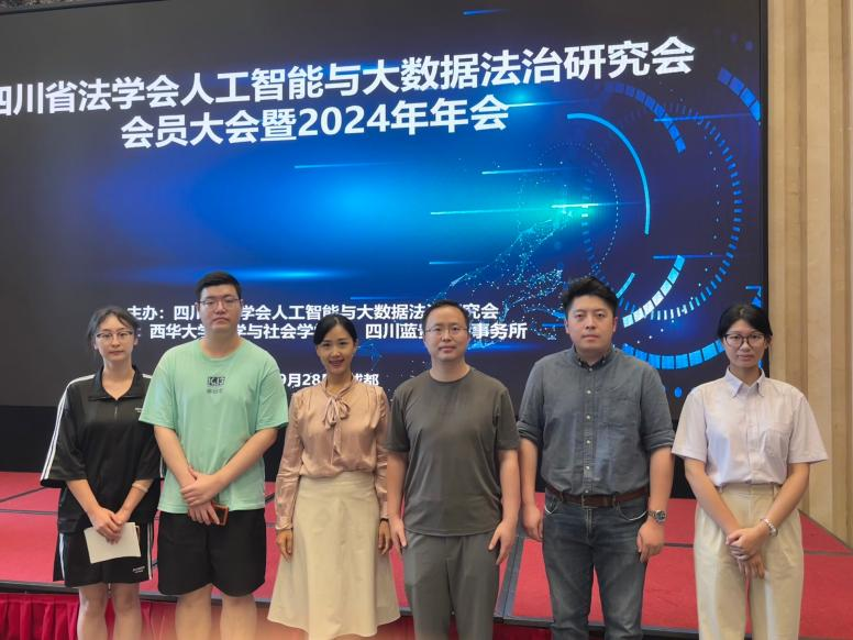 2024年9月28日,四川省法学会人工智能与大数据法治研究会在成都市武侯区翔宇宾馆顺利召开。本次会议聚焦人工智能与大数据背景下的法治建设,旨在促进学术交流,推动相关领域的法治研究及立法发展。太阳集团官网院长助理邓君韬副教授、张倩雯副教授、张敖副研究员受邀参会,2024级法学硕士研究生张腾宇、2024级法律硕士孙键、刘朝霞随同参会学习。