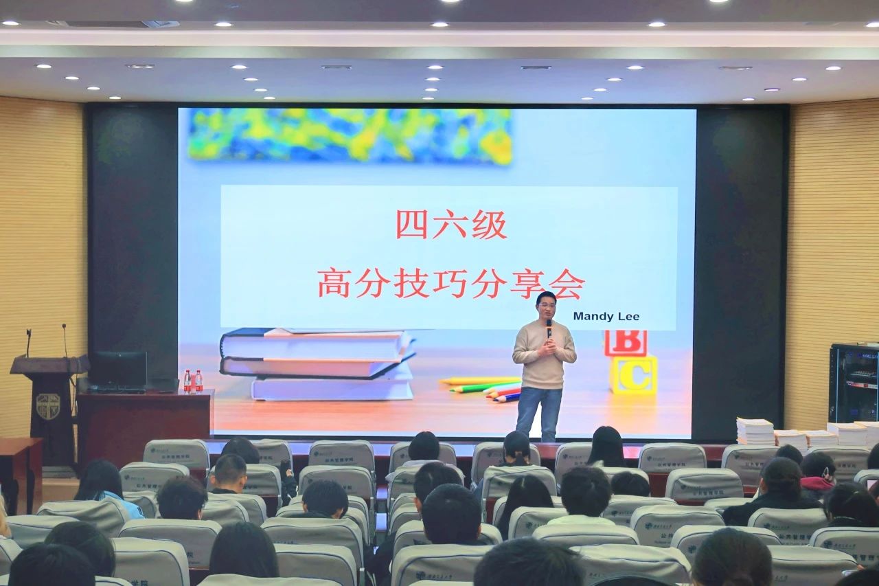 为帮助同学们更好地应对四级考试,提升应试技巧,增强备考信心,suncitygroup太阳集团于2024年12月5日下午3点30分在零号教学楼0231教室开展了四级考前技巧公开课,本次公开课邀请到了成都新航道李月星老师为大家传授经验。
