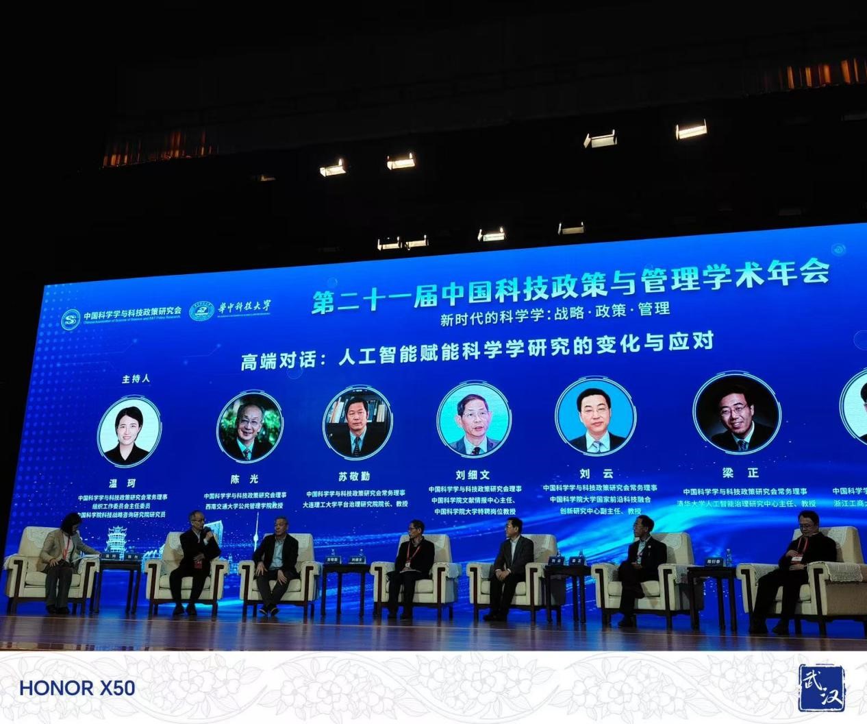 太阳集团官网陈光教授以中国科学学与科技政策研究会理事、公共管理专业委员会主任身份参加年会,并主持公共管理分论坛学术会议、报告论文《中美科技竞争前景预测:发展与安全》,参加大会“高端对话”《人工智能赋能科学研究的影响与应对》,做《人工智能是把双刃剑》的报告。