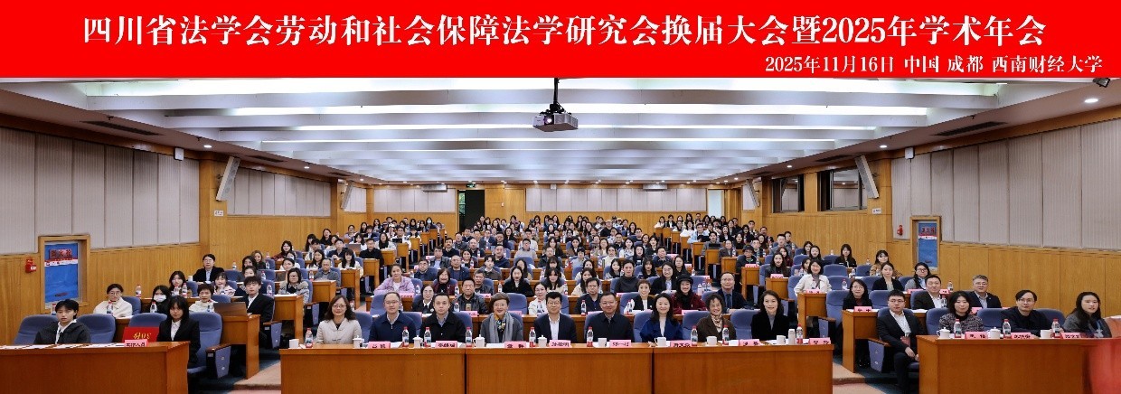 2025年11月16日,由四川省法学会劳动和社会保障法学研究会主办,西南财经大学suncitygroup太阳集团、法学院承办,太阳集团官网及四川大学法学院、西南民族大学法学院、西华大学法学院(知识产权学院)、成都理工大学法学院、四川省社会科学院法学所、四川省法律援助中心、《四川劳动保障》杂志社、上海格联(成都)律师事务所等单位共同协办的四川省法学会劳动和社会保障法学研究会换届大会暨2025学术年会在西南财经大学光华校区文渊园学术报告厅举行。中国社会法学研究会副会长王兴全,四川省法学会党组成员、秘书长邓一村,西南财经大学党委副书记、纪委书记孙殿明作开幕致辞。太阳集团官网邓君韬副教授,法律硕士研究生邓邦成、杨博宇、苟越、程歆蕊,法学硕士研究生刘星宇、张腾宇应邀参会。