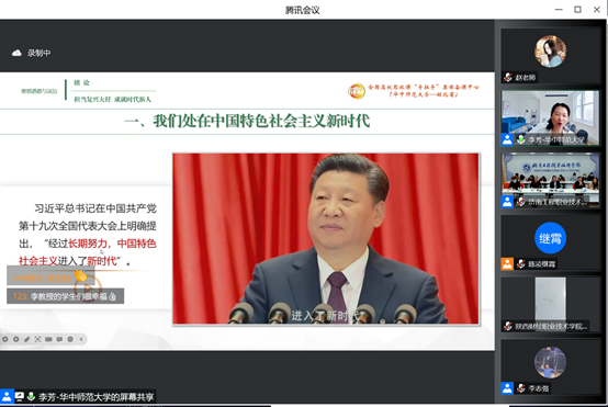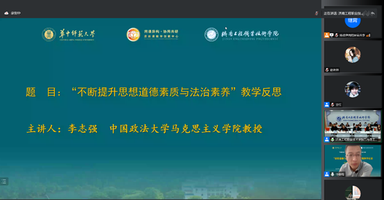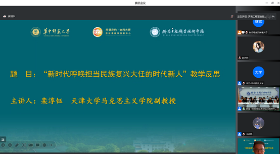 2022年11月6日,SUNBET申搏官网思想道德与法治教研室全体教师在线参加了全国高校思政课“手拉手”集体备课中心和华中师范大学“同课异构·协同共研”思政课创新中心共同主办的“思想道德与法治”课绪论专题教学反思与质量提升研讨会。研讨会邀请了华中师范大学SUNBET申搏官网副院长李芳教授、天津大学SUNBET申搏官网栾淳钰副教授和中国政法大学SUNBET申搏官网李志强教授,围绕“思想道德与法治”课绪论部分“我们处在中国特色社会主义新时代”、“新时代呼唤担当民族复兴大任的时代新人”和“不断提升思想道德素质与法治素养”三个专题分享了自己的教学设计和教学反思,并交流了自己的教学经验,强调在思想道德与法治课程的教学中要注重教学反思、讲清基本概念、紧扣课程要求。同时,专家还在各自专题中专门讲述了如何将党的二十大精神融入“思想道德与法治”课教学中。最后,由华中科技大学SUNBET申搏官网梁红教授围绕“思想道德与法治”教学反思和思政课教师内生动力进行了专题分享。会后,教研室教师在线分享和交流了参加研讨会的感受,尤其是专家的一些教学设计思路可以借鉴到自己的教学中。通过参加此次研讨会,思想道德与法治教研室全体教师对教学内容有了更为深刻的理解和把握,对促进我校思想道德与法治课教学质量提升发挥了重要的作用。