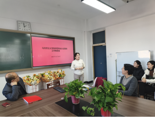 赵婉华副院长就前期师范专业认证专家反馈意见的梳理情况、学院制定的整改方案要点以及当前整改进展向与会人员作了详细汇报。她结合培养目标、毕业要求、课程与教学、合作与实践、师资队伍、支持条件、质量保障、学生发展等八个一级指标,逐一分析了目前存在的薄弱环节与待改进事项,并对下一阶段整改工作的重点任务、责任分工与完成时限作出了具体部署。她强调,要特别关注课程体系对毕业要求的支撑度、实践教学环节的实效性以及质量保障机制运行的闭环管理,确保整改工作有的放矢、精准发力。