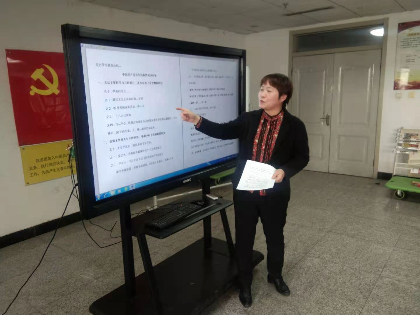 在讲座中,郭书记从方法、价值、途径、精神四个维度,诠释了中国共产党百年历程的成功经验。即方法上坚持学与习的并行,进步中有了豪迈自信的党;价值上坚持大与小的厘清,奉献中有了成就辉煌的党;路径上坚持和与分的抉择,团结中有了成长壮大的党;精神上坚持志与道的相融,奋斗中有了星火燎原的党。她的宣讲以中国共产党百年历程中的重大事件为史,以孔子、孟子、荀子、王阳明的名句为典,以马克思中学毕业论文、毛泽东诗词、习近平重要讲话、红色歌曲为经、以现实的工作和生活为教,逻辑清晰、史料具体、语言平实、感悟真切。