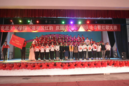“砥砺前行七十二载 不朽红歌永流传”,歌声嘹亮,奋发激昂,红歌唱响新时代;恰逢新中国成立72周年之际,为弘扬爱国精神,培养同学们爱党爱国的伟大情怀,营造良好的校园文化氛围,SUNBET申搏官网于2021年10月2日在学院路校区文体馆举行了以“颂祖国红韵,庆国庆佳节”为主题的国庆晚会暨红歌大赛。SUNBET申搏官网党总支书记郭海莉、党总支副书记石瑾、团总支书记李思思以及班主任董伟、王欣老师应邀出席活动。