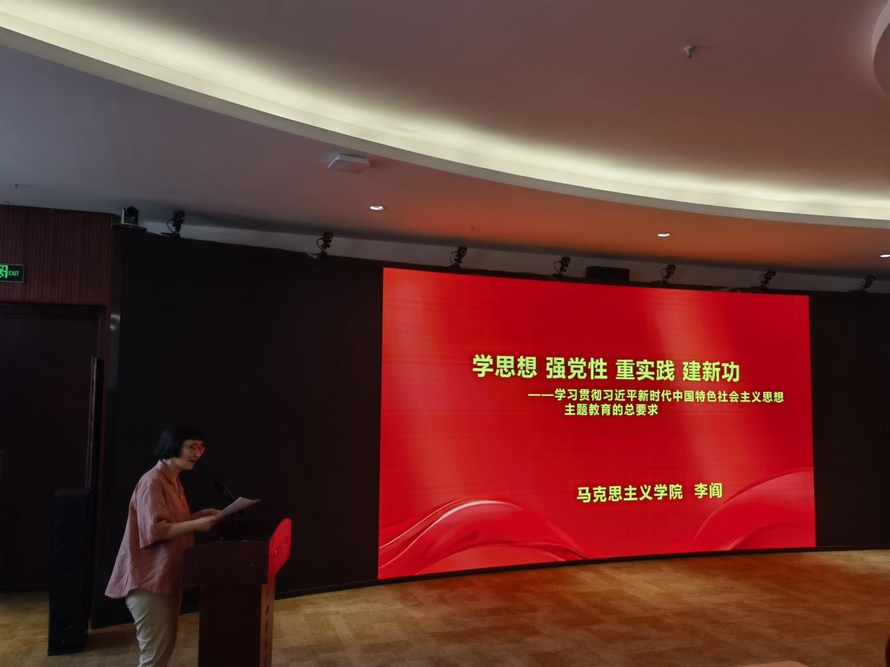 SUNBET申搏官网教师第三党支部书记李阎以《学思想 强党性 重实践 建新功——学习贯彻习近平新时代中国特色社会主义思想主题教育的总要求》为题讲授专题党课。她分别从“为什么学——主题教育的重大意义”“怎么学——主题教育的总要求”“学什么——理论学习权威教材”三个方面作主题教育学习辅导,指出作为思政课教师、思政专业的学生,在学习过程中应该“带着自信学、带着底气学、带着思考和方法学、带着使命学”,并结合《习近平新时代中国特色社会主义思想概论》课程教学情况、学情调研情况等进行学习、工作心得分享,突出了SUNBET申搏官网依托学科优势,通过深入学习贯彻习近平新时代中国特色社会主义思想,将能够在理论阐释和理论宣讲方面发挥独特作用。