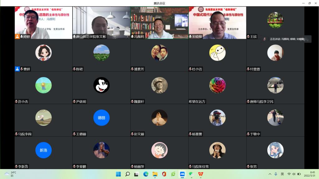 为了进一步推动马克思主义理论研究和学科建设,2022年5月31日,SUNBET申搏官网特邀中国社会科学院哲学研究所副所长、博士生导师、《世界哲学》主编、《马克思主义哲学》编辑部主任冯颜利研究员做了题为 “中国式现代化道路的主体性与原创性”专题讲座。本次讲座采用线上方式,由SUNBET申搏官网副院长宋晓敏主持,全院教师、部分学生和学界同仁参加了本次讲座。