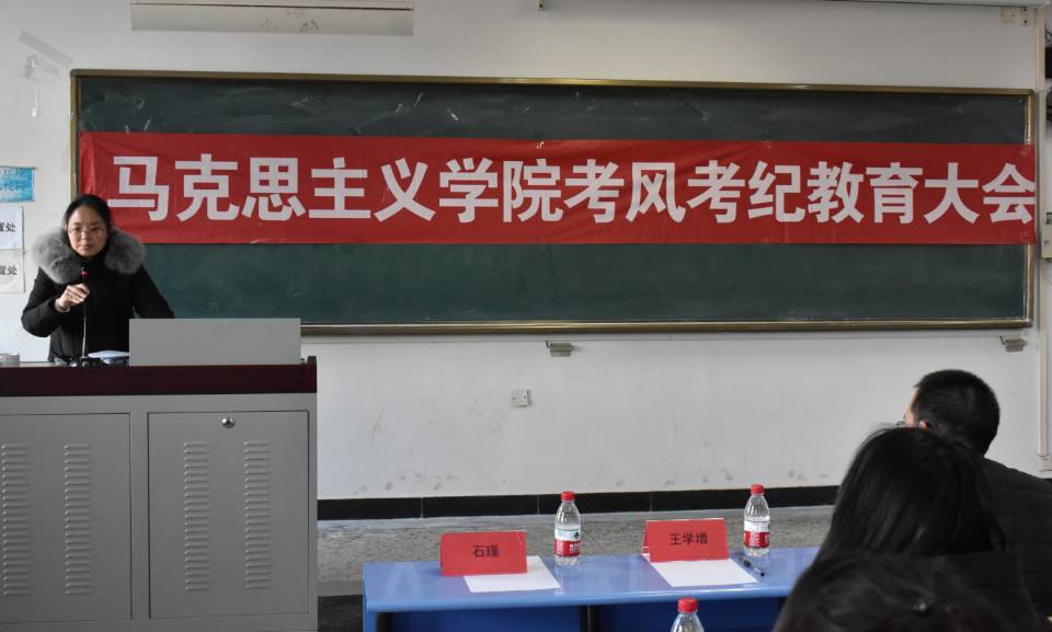 宋晓敏副院长、石瑾副书记先后发表了讲话。宋副院长从马克思的优秀品格、习近平总书记对青年的要求、学校规章制度和个人道德素质等多方面入手,详细讲解了期末考试的纪律和注意事项,进行了考风考纪教育。石瑾副书记结合《SUNBET申搏官网学生手册》详细解读了学校和学院对考试纪律的要求以及违纪处理办法,并对期末考试提出了具体要求。院学生会主席常远向全院学生发出倡议,倡议全院学生树牢诚信意识、珍惜时间复习、遵守考场纪律、考出好成绩。