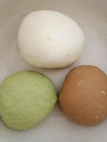 2 .分别揉成光滑的面团,并擀成薄饼。
