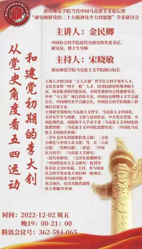 报告题目:《从党史角度看五四运动和建党初期的李大钊》