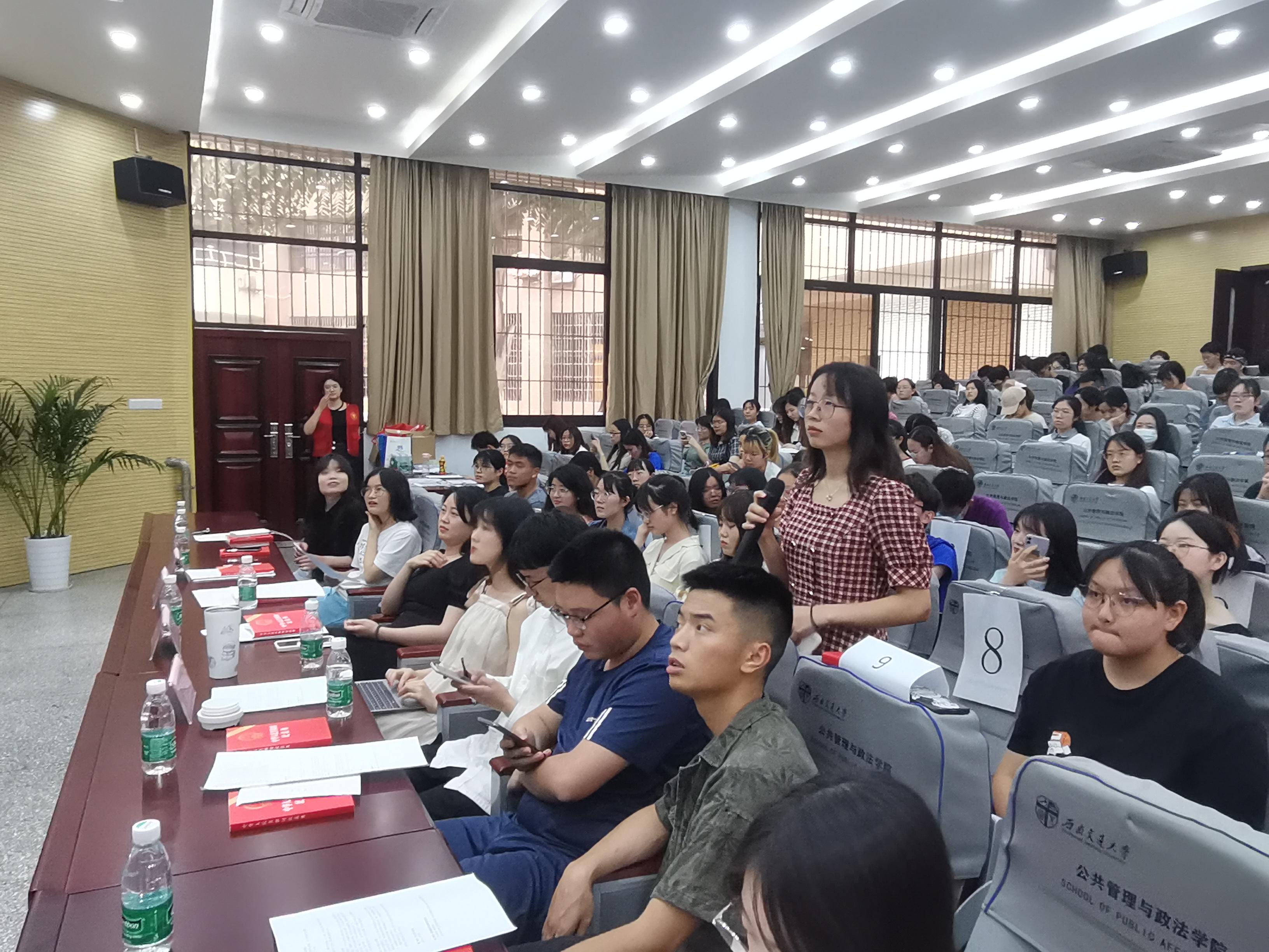 在活动第一阶段的民法典和党史知识竞赛中,十支队伍轮流作答,场上选手们时而与队友小声商量、探讨,时而静心思考,寻觅答案。轮到自己队伍时,每位队员从容不迫,自信大方地呈现自己的答案。主持人话音刚落,抢答器就被选手按下,这是知识的碰撞;台下的同学加油鼓励,不断将现场气氛推向一个又一个高潮。