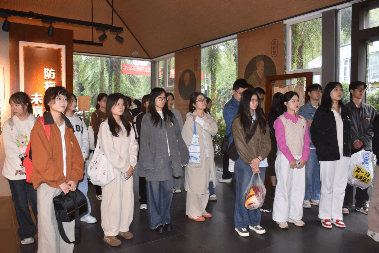 防微馆将中医文化与新时代党风廉政建设相结合,通过展示中医的“治未病”理念,寓意着预防腐败的重要性。这一理念强调在疾病尚未形成或症状不明显时就进行干预,以避免疾病的发生和发展,与反腐工作中的“抓早抓小”原则不谋而合。正如在疾病初期就进行干预可以防止小病发展成大病,反腐工作也需要在问题萌芽阶段就及时发现并采取措施,防止小问题演变成大问题。同时通过对于中医的预防和治疗疾病的方法展示,让参观师生领悟到了廉洁自律、防微杜渐的深刻内涵。花语堂则通过花卉的寓意传达廉洁自律的价值观。在花语堂,每一种花都承载着特定的廉洁寓意,如莲花代表“出淤泥而不染”,菊花象征“高洁”,通过讲解员的详细解说,参观师生们对每一种花的廉洁寓意有了更深刻的认识,从而在心灵深处树立起廉洁自律的意识,加深了对新时代党风廉政建设的理解。