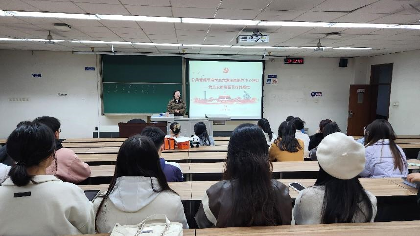 会议上半场,许楠老师作为指导老师发表了讲话。首先,许楠老师向部员们介绍了学生党建发展指导中心自成立以来的部门设置以及工作内容划分的调整,让部员们在了解组织发展历程的同时深刻认识到党建工作的重要性;另外,许楠老师对发展党员的详细流程进行了梳理与整合,重点指出发展党员流程中各阶段所对应的具体发展条件,同时强调党建工作在各阶段、各环节都必须符合《中国共产党发展党员工作细则》的要求,坚持以规范、严格作为各部门开展工作的标准;最后,许楠老师表达了对新部员的期望,希望大家能够在今后的日子里共同学习、交流并积极参与丰富多彩的团队建设活动,全面提升学生党建发展指导中心的组织协作能力。