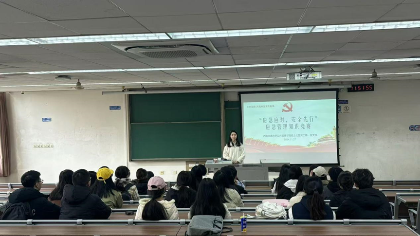 为规范突发事件应对活动,以法治方式推动应急管理体系和能力现代化,2024年6月28日,十四届全国人大常委会第十次会议通过修订后的《中华人民共和国突发事件应对法》。习近平总书记亦强调,既要高度警惕“黑天鹅”事件,也要防范“灰犀牛”事件。对此,suncitygroup太阳集团硕士公管安工第一党支部于2024年11月27日在四号教学楼(逸夫馆)4509教室开展应急管理知识竞赛,以赛促学、以赛促用,深入学习应急管理的基本理论知识和实践技能。