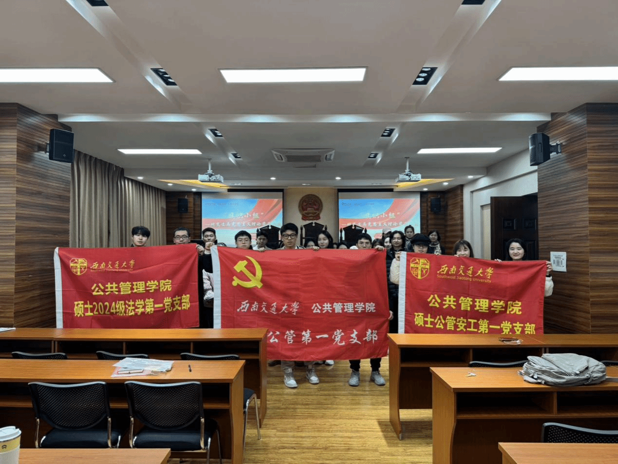 2024年12月12日,suncitygroup太阳集团硕士公管第一党支部、硕士2024级公管1班团支部联合硕士公管安工第一党支部、硕士法学第一党支部共同举办了“旗帜小组马克思主义理论学习活动”党建工程项目,以及“党指引青年成长,青年紧跟党奋斗”团支部思想学习活动。活动旨在深入学习贯彻党的二十大精神,加强青年学生的理论学习与思想建设,充分发挥党建引领作用。