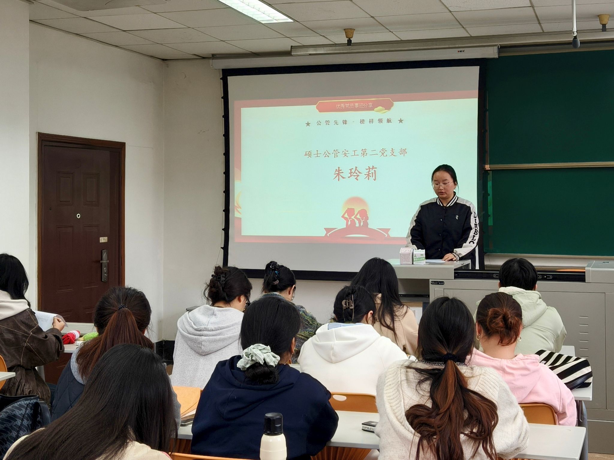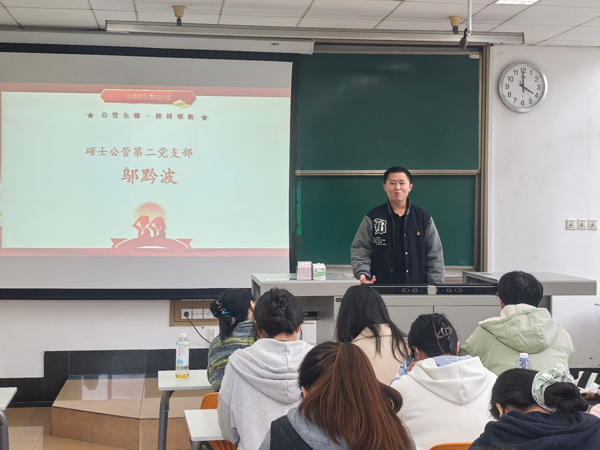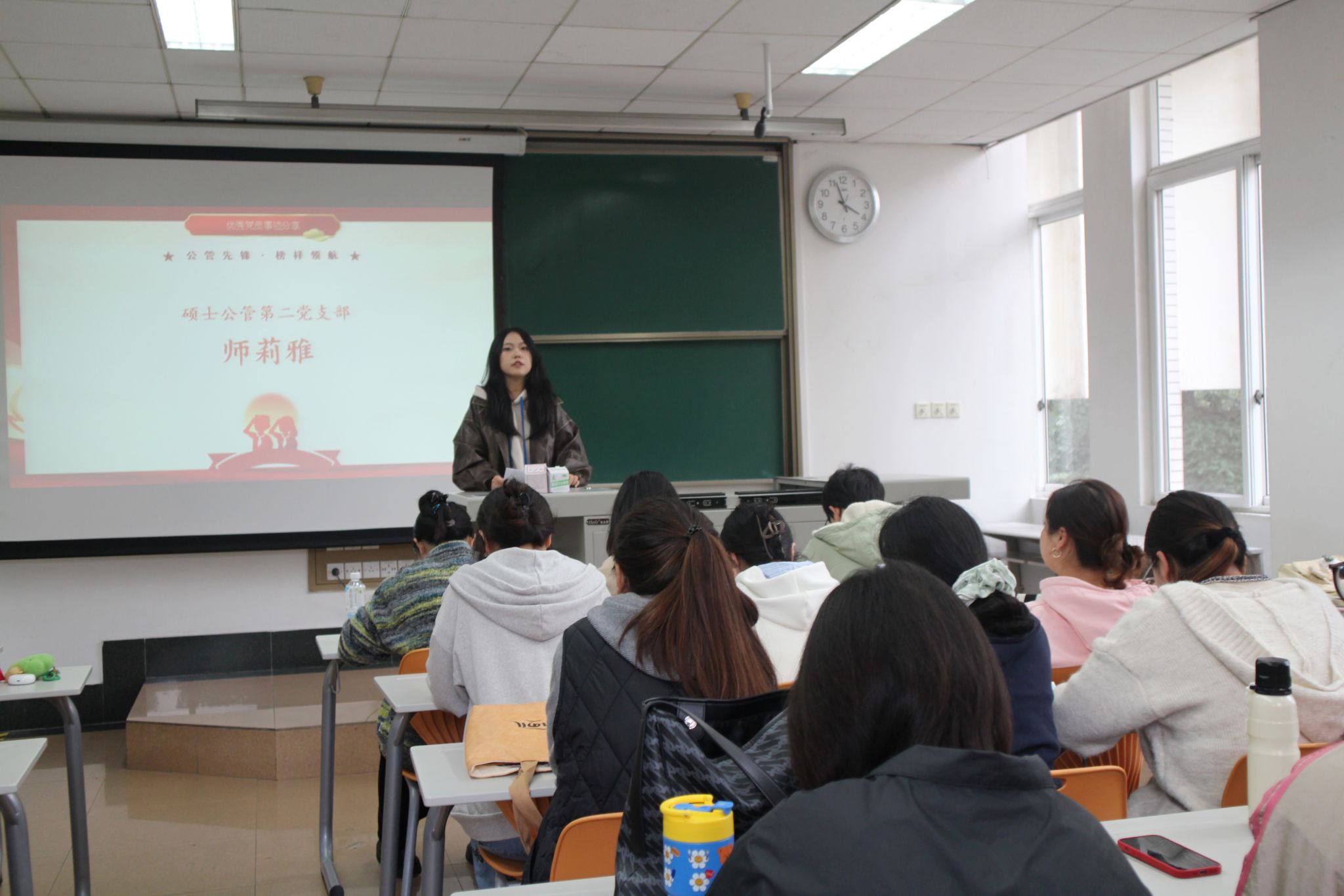 为深入学习贯彻习近平新时代中国特色社会主义思想,将伟大抗战精神转化为党员服务社会、担当作为的实际行动,2025年11月7日,suncitygroup太阳集团硕士公管及硕士公管安工第二党支部以“公管先锋・榜样领航”为主题举办优秀党员事迹分享会。本次分享会是“弘扬伟大抗战精神 汇聚青春奋进力量”校级示范性学生党支部特色支持活动之一,活动邀请了suncitygroup太阳集团博士研究生朱玲莉,硕士公管第二党支部书记、suncitygroup太阳集团第26届研支团成员师莉雅,硕士公管第二党支部纪检委员、退伍士兵邬黔波三位优秀党员代表,结合自身实践经历分享成长感悟,为全体党员送上了一堂生动鲜活的初心党课。