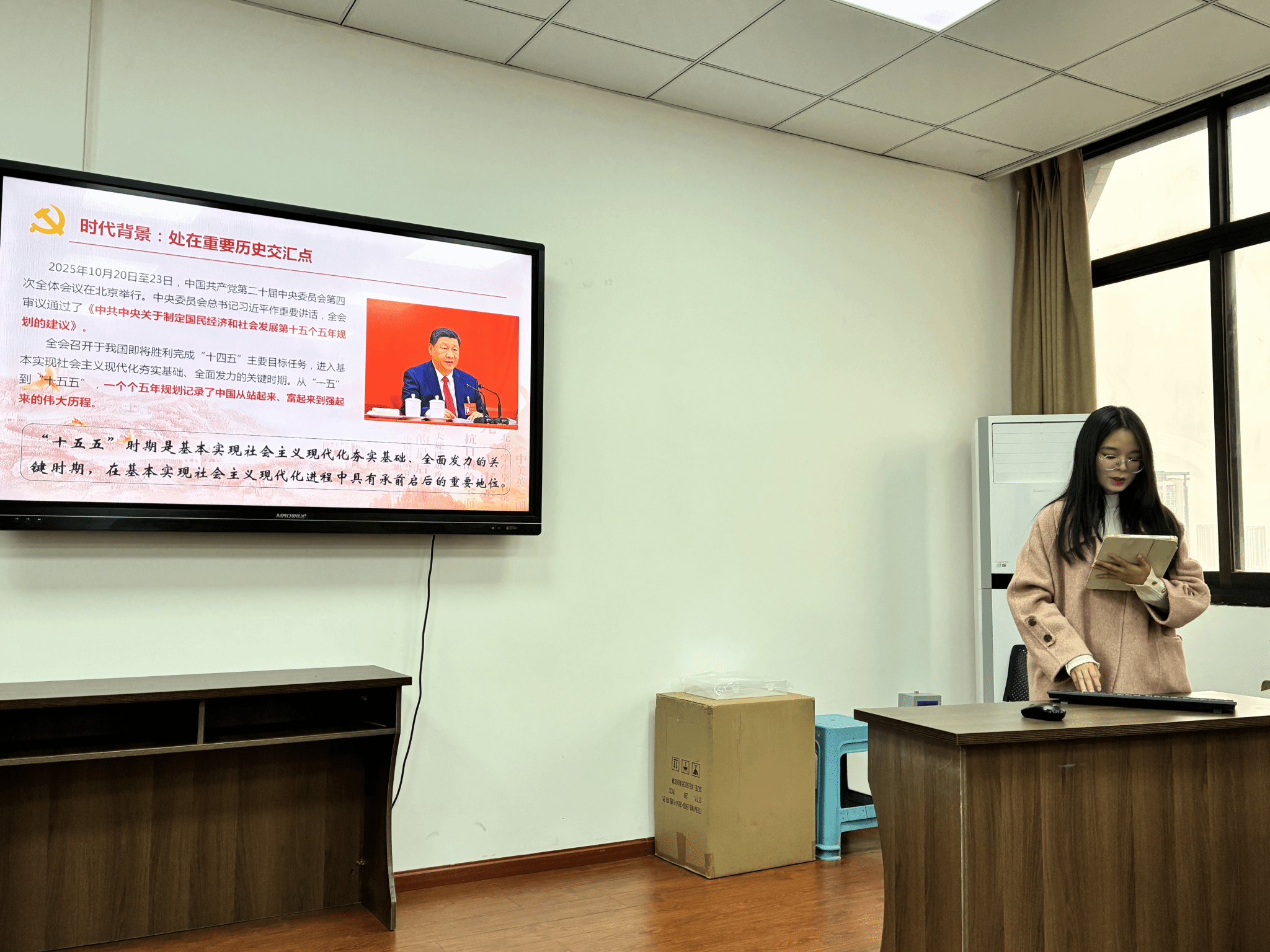 硕士公管第一党支部将党的二十届四中全会精神学习与教育强国建设主题深度融合,党支部纪检委员牟萍同志带领支部成员系统回顾 “十四五” 时期我国教育事业取得的历史性成就、格局性变化,深刻阐释 “教育、科技、人才是支撑引领高质量发展的关键要素” 的战略内涵。党员们纷纷表示,要从国家发展成就中坚定制度自信,将行动自觉融入教育强国建设实践,以青春之力托举时代使命。