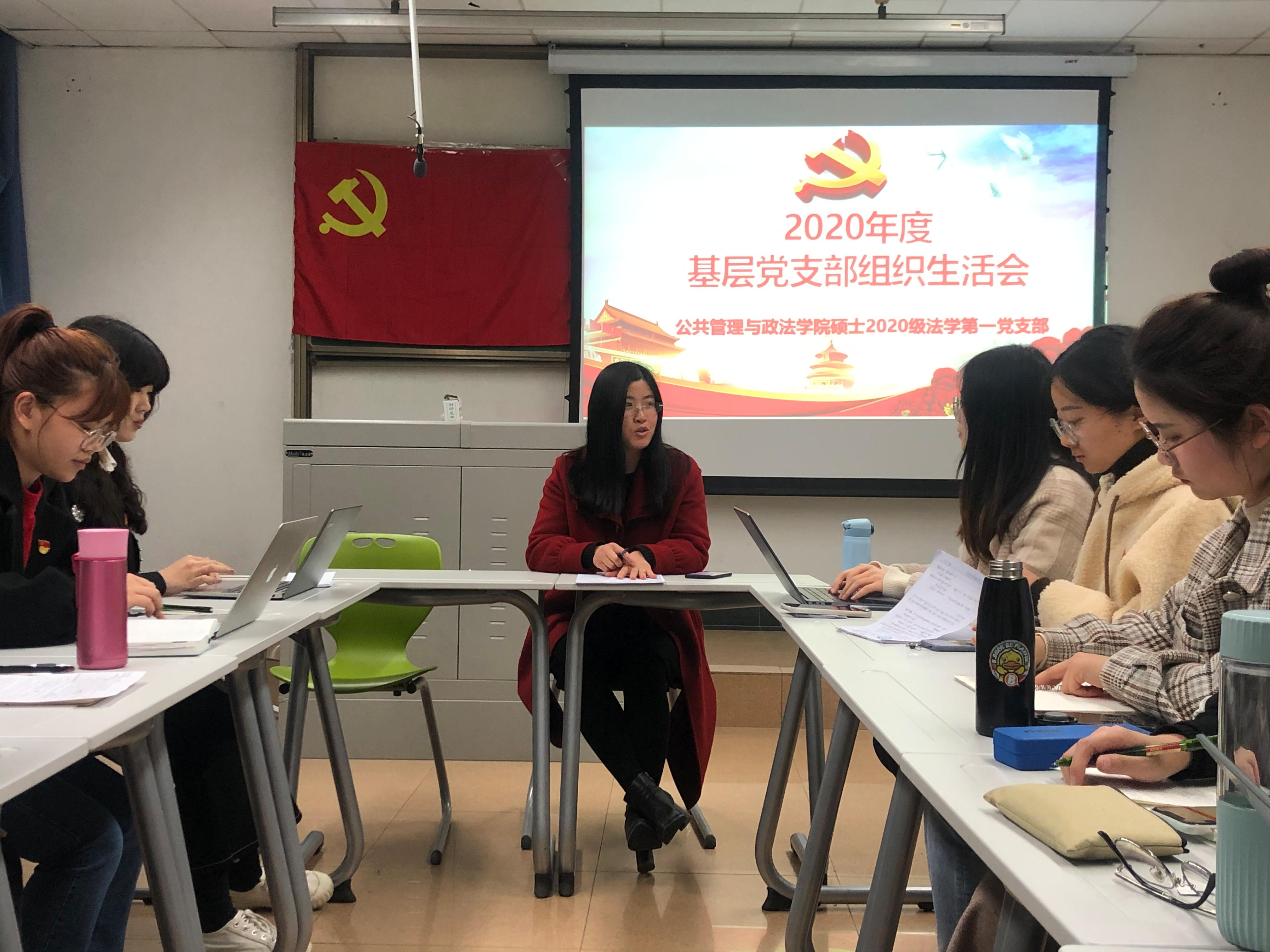 2021年3月11日19:00-21:00,硕士2020级法学第一党支部在逸夫楼220教室召开了2020年度基层党支部组织生活会和开展民主评议党员,学院党委副书记余小英老师受邀参加并进行点评。