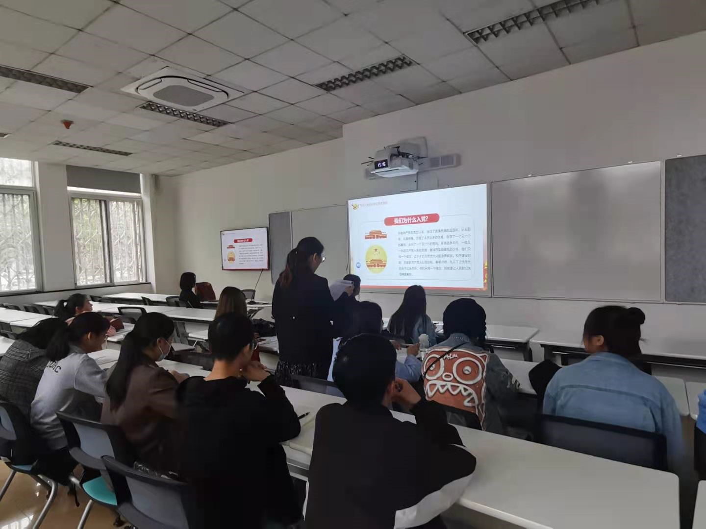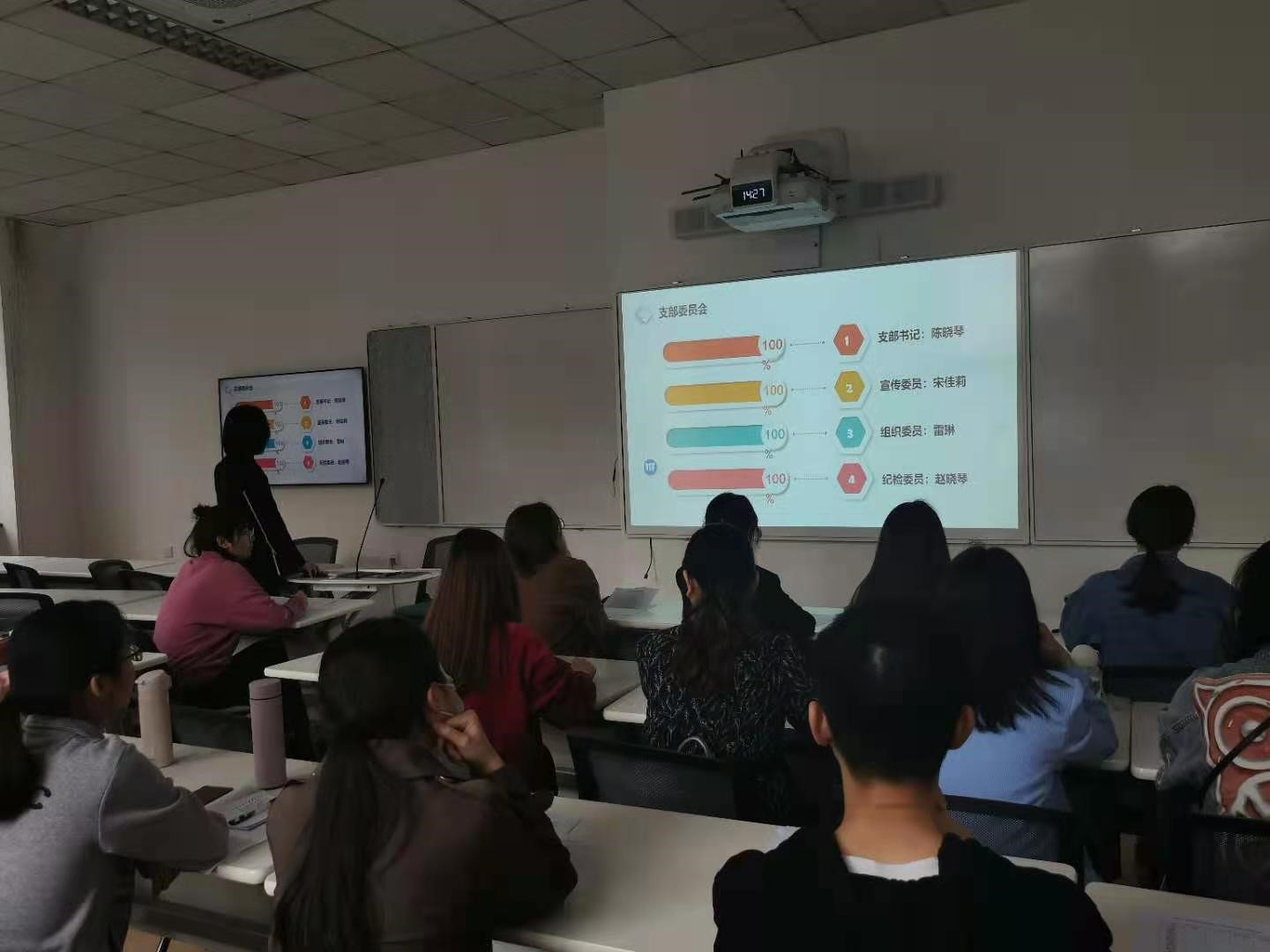 其次是进行党支部述职报告;党支部书记陈晓琴同志代表硕2020级公共管理第一党支部委员会向全体党员做了述职报告,详细讲述了支部半年来的基本工作情况变化;并带头梳理和引导全体党员回顾了党支部组织的各类主题党日学习活动、支部大会、新生党员发展档案整理以及本支部党员发展工作情况。最后并对去年支部在工作上的优缺点进行了总结,对支部存在的问题提出了一系列的整改措施旨在更好地发展支部委员会。