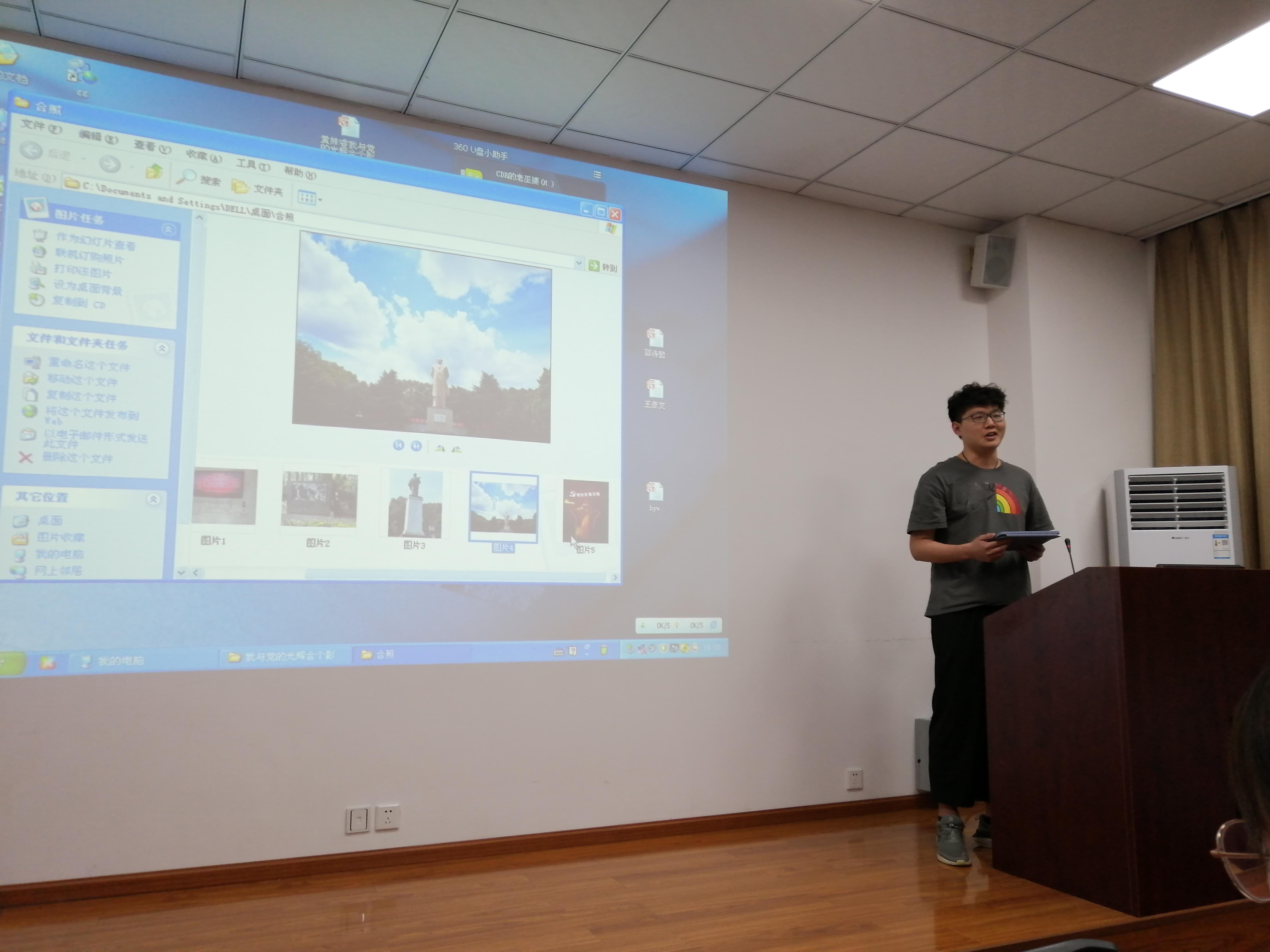 第一位分享者是黄凯同学,分别采访了两位革命烈士,感慨战争年代的不易,深刻且有意义。黄彦植同学分享了自己2008年在北京天安门的照片,结合北京奥运会回忆了当时的趣事,稚嫩却也富有情怀;霍雨薇同学分享的是山西省临汾战役纪念馆的照片,带着我们一起回忆了那段战争岁月,并介绍了革命先烈徐向前的一生,最后以祝愿党和祖国繁荣昌盛结尾。高嘉豪同学分享了在建川博物馆所拍的照片,回忆了战争年代的四川解放历程,向在场听众讲述了成都革命往事。