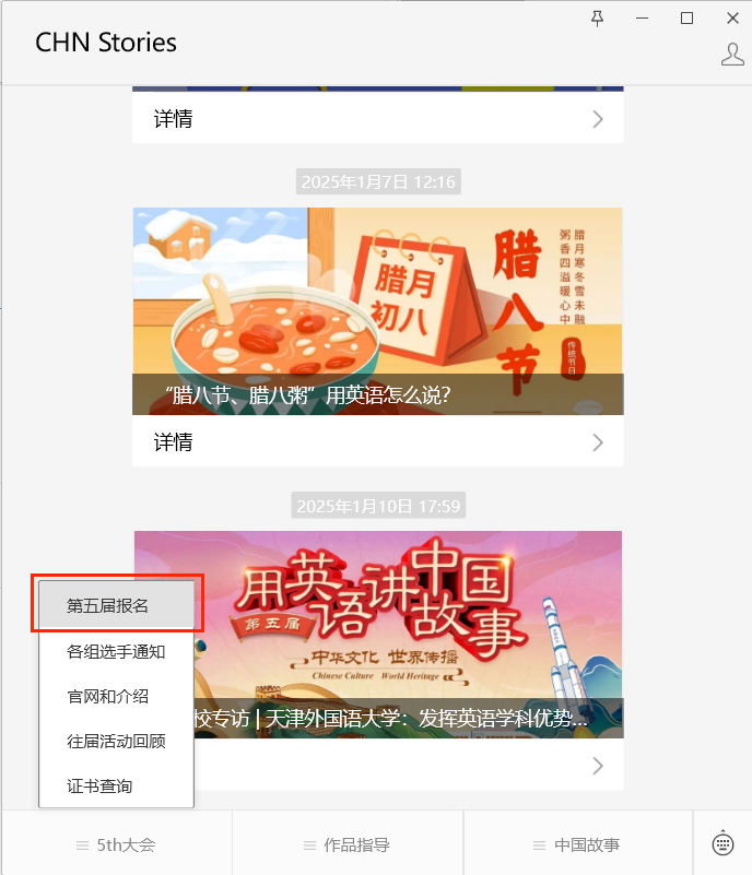 请各位选手同步报名并且提交作品至用英语讲中国故事微信公众号“CHN stories”或者扫描二维码进行报名。