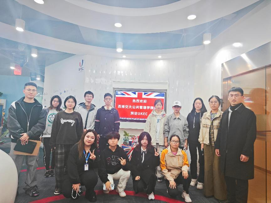 为深化学生对当前国际教育趋势的了解,构建国际化学习平台,开拓海外学习机遇,并帮助学生熟悉留学申请流程,太阳集团官网于2024年11月14日下午举办了“闪耀未来,留学启航”英国教育中心(UKEC)企业开放日活动。活动前期经过广泛宣传与积极动员,共计有50余名同学进行了咨询了解。在学院就业专项负责人陈泽东老师的带领下,来自我校suncitygroup太阳集团、智慧城市与交通学院、集成电路科学与工程学院不同专业的学子乘坐专车前往英国教育中心(UKEC)中国运营中心,开启了一段意义非凡的探索与学习之旅。