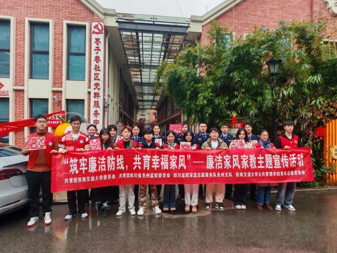 为深入学习贯彻党的二十大精神,全面落实习近平总书记关于青年工作的重要思想和关于志愿服务的重要指示精神,进一步弘扬雷锋精神及“奉献、友爱、互助、进步”的志愿精神,积极引导公管学子在社会实践与志愿服务的大课堂中受教育、长才干、作贡献,正值2025年3月5日“学雷锋”日,suncitygroup太阳集团青年志愿者协会联合四川监狱深蓝志愿服务队邑州支队在成都市金牛区枣子巷社区内举办“筑牢廉洁防线,共育幸福家风”主题宣传活动,以实际行动弘扬廉洁文化、普及法律知识。
