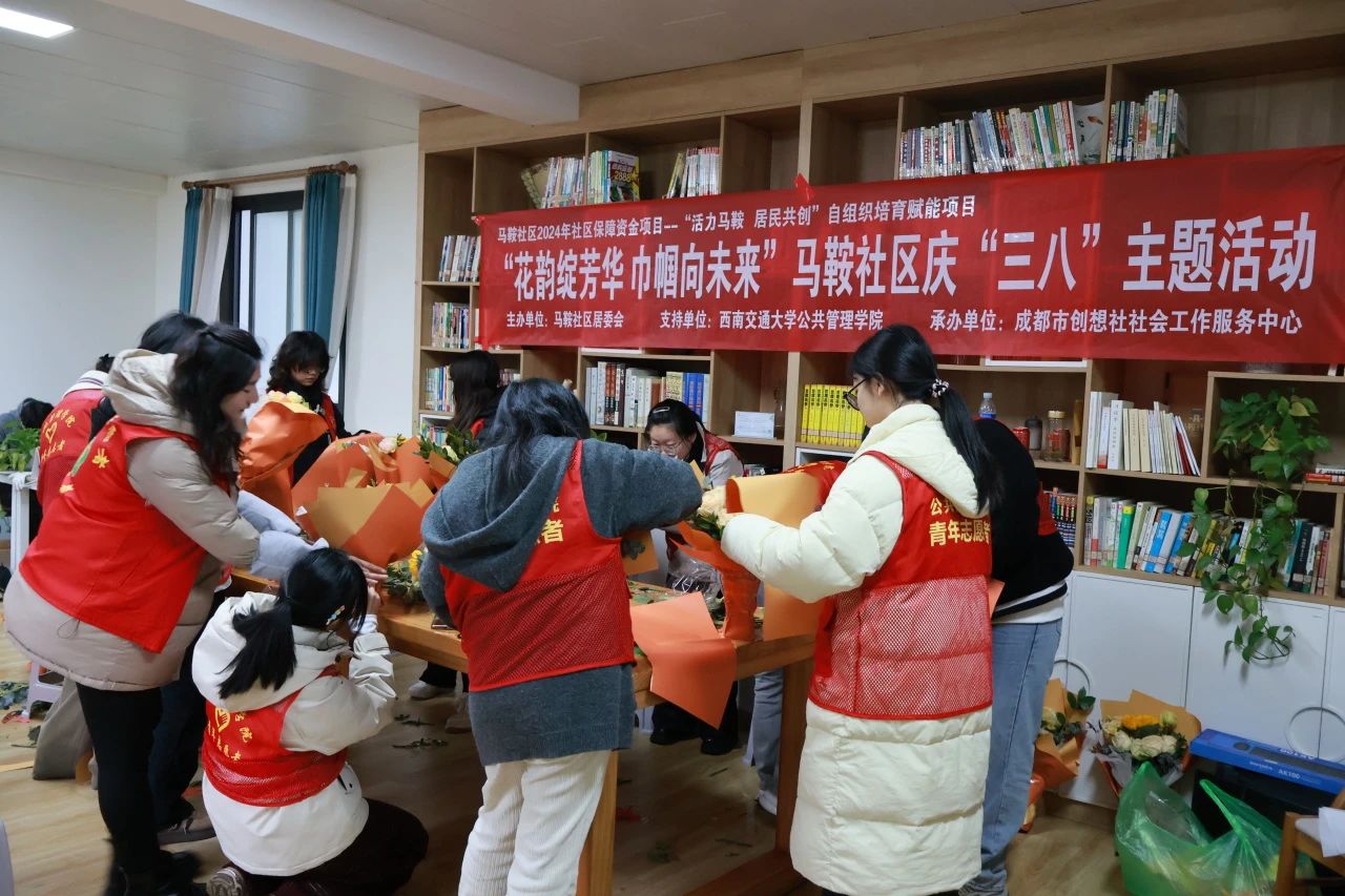 为庆祝“3.8国际妇女节”,弘扬中华民族团结和睦、互帮互助的优良传统,营造温馨和谐的社区氛围,suncitygroup太阳集团青年志愿者协会的志愿者们于3月7日上午前往马鞍社区,开展了“花韵绽芳华,巾帼向未来”妇女节主题活动。15名青年志愿者与社区妇女携手参与,以花束传递欢笑与热爱,用问候传递真情与温暖。