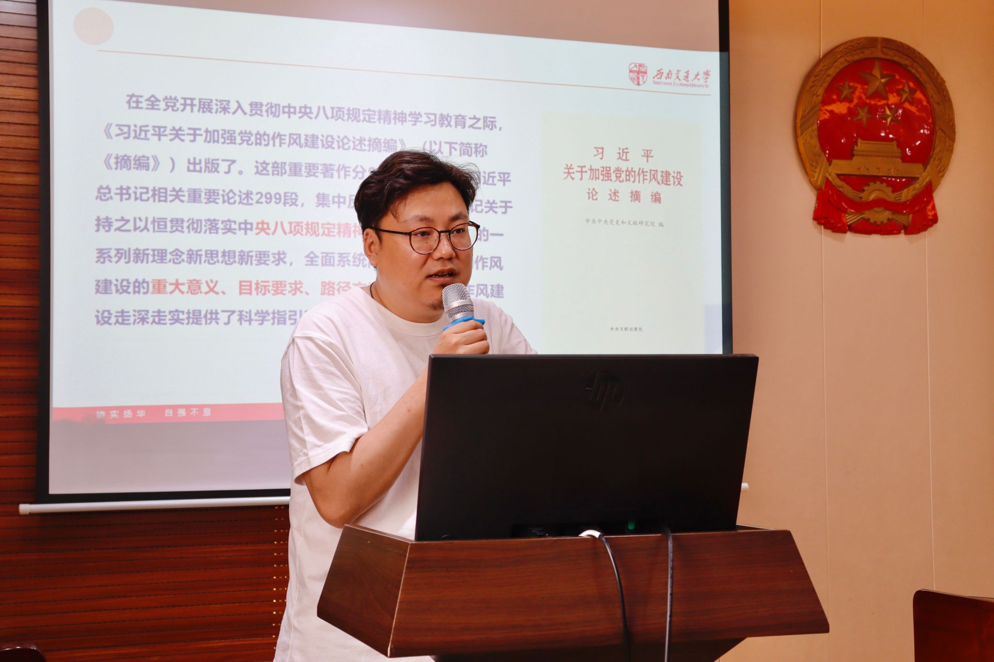 景星维以开展深入贯彻中央八项规定精神学习教育的时间、目标要求、工作安排、组织领导等具体内容引入,传达了《习近平总书记关于中央八项规定的部分重要论述摘编》有关内容,重点对中央八项规定及其实施细则进行了逐条学习、讲解。景星维指出,在全党开展深入贯彻中央八项规定精神学习教育,是党中央作出的重大决策。青年干部更要充分认识开展学习教育的重要性,以彻底的自我革命精神加固中央八项规定精神堤坝。