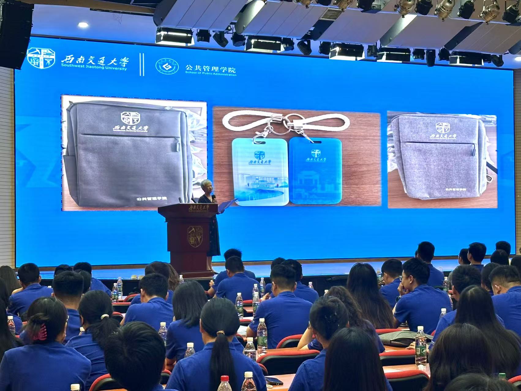 随后,学院党委书记高凡教授介绍2025级MPA新生纪念品——以“载物之器”承载“育人之志”,高书记表示:“这两份礼物,既伴学子行稳求学路,更寄寓‘器以载道,笔绘公心’的深切期许。”高书记勉励新生,愿这份兼具实用价值与精神温度的心意,能伴随大家在公共管理的征途上,以器载道、以笔书华,终成致用之才。