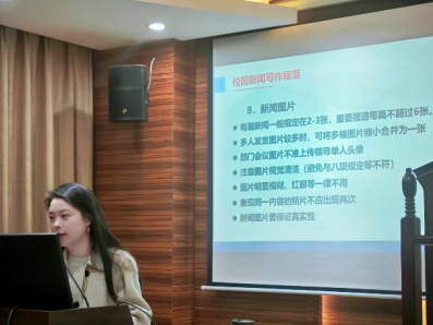 校园新闻是传递信息的良好方式,更是展现学院风采、传播正能量的关键平台。掌握新闻写作的精髓与规范,不仅能够提升个人的综合素质,而且可以为学院的文化建设添砖加瓦。为深化学院干部们对新闻写作的理解,明确新闻稿件的撰写格式,提高新闻写作的水准,suncitygroup太阳集团于2024年12月4日晚在0号教学楼01417室举办常见新闻写作和格式规范培训专题讲座,邀请了党委办公室机要科科长、suncitygroup太阳集团青年讲师团成员张哲老师为本院第八期“青马工程”学员授课。