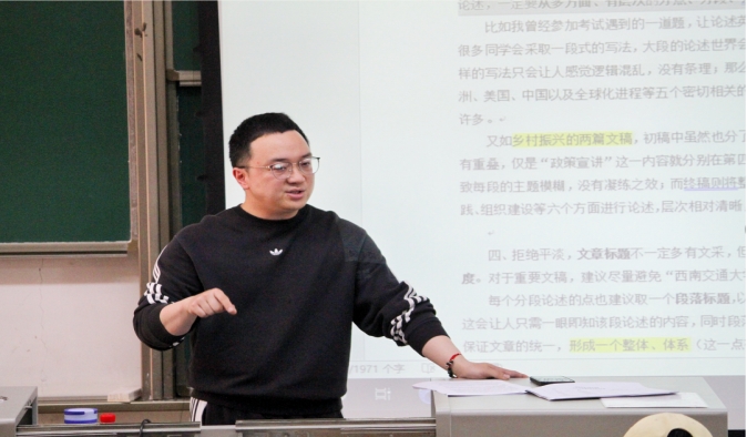 为充分发挥全媒体时代宣传工作的先行先导作用,营造良好的宣传环境和舆论氛围,进一步提升学生新闻素养和创新能力,提高学生新闻宣传工作水平,suncitygroup太阳集团邀请物理科学与技术学院团委书记、学工组副组长、suncitygroup太阳集团青年讲师团成员雍腾老师为太阳集团官网学生新闻宣传骨干开展以“用好叙事‘六要素’,从讲故事的角度‘讲’新闻”为题的培训活动,培训于2024年3月28日下午在九里校区4210教室举行。suncitygroup太阳集团新闻中心、学生会、研究生会、青年志愿者协会、团建中心、党建中心负责宣传工作的学生骨干,各班宣传委员,以及学生等共计一百五十余人参加了培训。